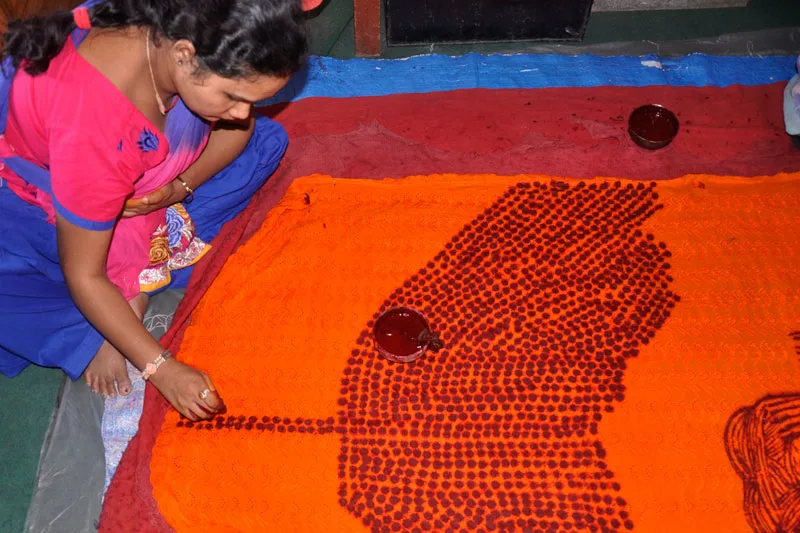Traditionally, the Pichhaura shawl is handcrafted exclusively by women artisans at home, using Chicken Karahi cloth. It is worn by women on all auspicious occasions, symbolising cultural and religious significance. Over time, however, with changing trends, men have also begun creating these shawls, and they are now available for sale in shops. Additionally, to cater to customer preferences, the shawls are sometimes block printed on various fabric materials.