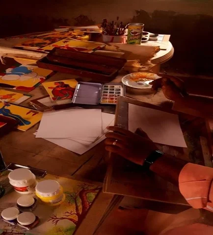 India known for its rich diversity and culture.Most of the Indian states have unique tradition of story telling. Among the many unique forms of narrative art, Chitrakathi stands out as a beautiful blend of painting and oral storytelling. This artform is practiced by the Thakar tribal community in Maharashtra, this art form includes handmade paintings with spoken tales, mainly from the epics like Ramayan and Mahabharata . It is not just an art but a living tradition that brings stories to life through colour and voice. Lets explore the history, process, tools, row material, motifs and everything else that make Chitrakathi what it is today.