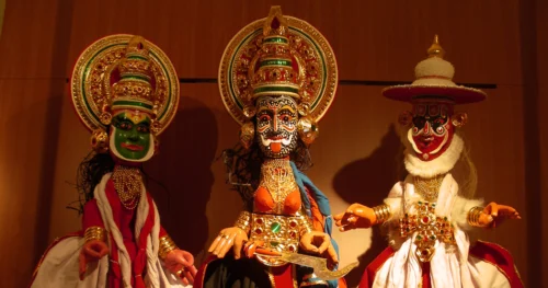 Kathakali is arguably the most famous classical art form of Kerala. With its exceptional emotions (rasa), intuitive hand gestures (mudra), captivating attire (vesham), and sophisticated lyrical tradition (attakatha), Kathakali’s iconography still attaches itself to the public expression of Kerala’s identity. But what if this theatre’s performance aspect is stripped of its humane elements and replaced with the intriguing niche of hand puppetry? That’s the story of Pavakathakali (Puppet-Kathakali), one of the rarest indigenous art forms in Kerala.