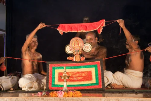One other important aspect of the performance is its duration. Due to the make-shift nature of Pavakathakali, the performances can run for hours or sometimes even an entire night. It also depends heavily on the places and the occasions. Most of the ‘house’ performances are short, while festivals demand a longer format. This versatility was one of the many reasons why the art form was popular and well-received even amongst the seasoned Kathakali practitioners.