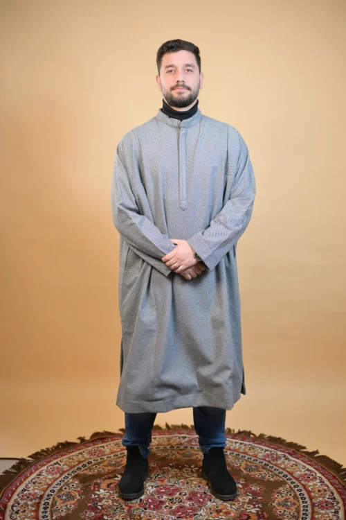 (Source: https://baraqah.in/product/grey-lined-kashmiri-pheran/?srsltid=AfmBOopJhPtRPJ4xJ_2I0yHJIyqaGresQcQKhVx3EyoLcbJx5umN7c9R)