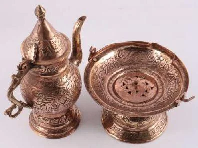 Hand-made Copper Kashmiri Tasht-Nari (Source: https://ruralhandmade.com/productdetails/handmade-copper-kashmiri-chinar-vine-engraved-tasht-e-naari-1)