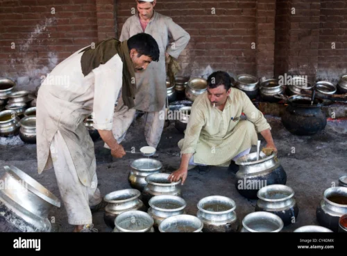 The team of Wazas (Source: https://www.alamy.com/stock-photo-wazas-traditional-kashmiri-cooks-prepare-a-wazwan-a-kashmiri-feast-51115034.html)